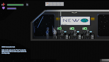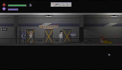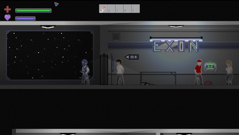 EXON is a 2D pixel art game. Your goal is to save your ship from a parasitic alien invasion that will attempt to reproduce with the human host.